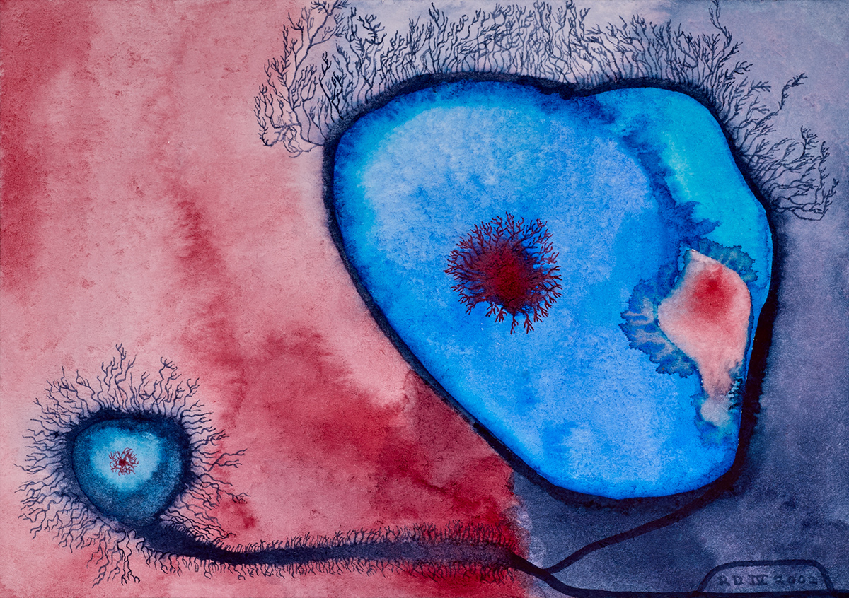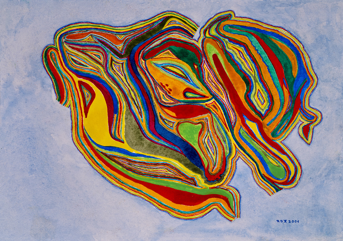 Mit meiner fotografischen Laufbahn entdeckte ich auch die Liebe zur Malerei. Ich begann ein Fernstudium an der „Freien Kunstschule Zürich“ und widmete mich vor allem der Aquarellmalerei. Meine Begeisterung weckten die herrlichen Rotmarderhaarpinsel, die so dick sie auch sein mögen eine sehr zarte, feine Spitze haben. Fortan schwelgte ich in farbenfrohen Malereien, die ich mit feinen Pinselstrichen vollende. Ich male auschließlich mit Pinsel und meine Werke wirken von Ferne bis hin zur Lupenansicht. Meistens male ich abstrakte farbenfrohe Werke, die kraftvoll leuchten und mit einem irrsinnig feinen Pinselstrich, der oft dünner ist als ein Haar, ausgearbeitet sind. Ich male oft nasse Entwürfe, die ich nach dem Trocknen mit eben diesem hauchfeinen Pinselstrich vollende. Dabei verwendet ich dann nur noch, egal bei welcher Dicke des Pinsels, seine superfeine Spitze. Wenn ich male horche ich in mich hinein, so kommen aus dem Unterbewusstsein, Farben aufs Bild, Flächen, Linie, oft höre ich dabei französische Chansons oder andere Musik je nach Stimmung, ich singe auch oft mit oder summe schöne Melodien. Nach einem schwungvollen Entwurf, versinke ich in magische Ruhe, meistens steuert mein Inneres, was der Pinsel malt, so gleicht kein Werk dem anderen und es ergeben sich immer neue Formen, die meine Emotionen, Gefühle und mein Erleben und Leben widerspiegeln.